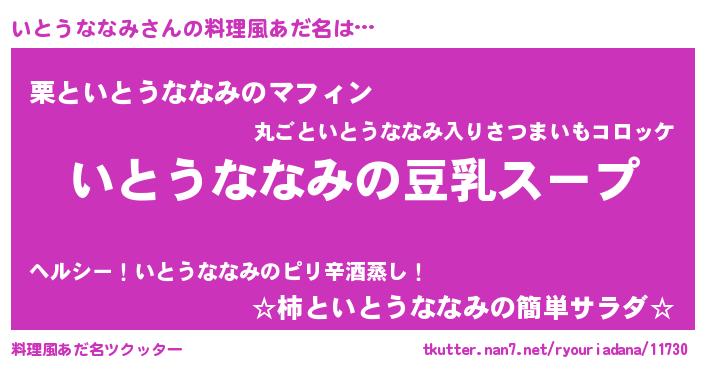 | ヘコむあだ名 | 『いと太郎』『いとうななみ(苦笑)』 |