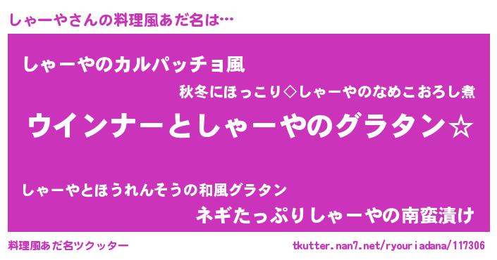 | 欧米人風あだ名 | 『しゃーやクリステル』 |