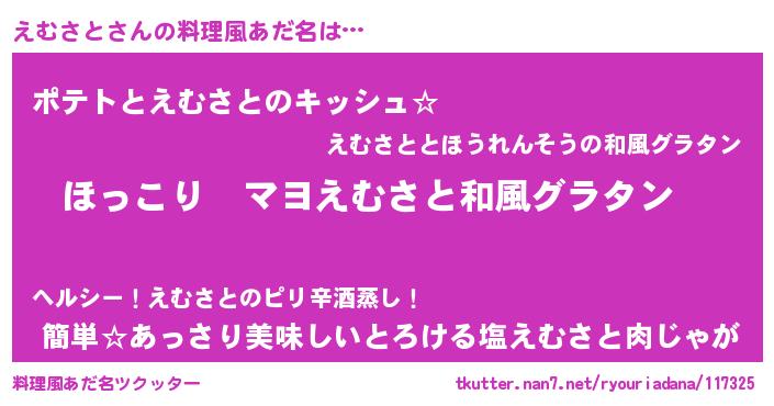 | 男性向けラノベタイトル風あだ名 | 『この素晴らしい世界にえむさとを!』 |