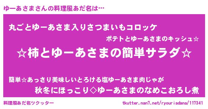 | 意味不明あだ名 | 『住所不定無職ゆーあさま(8歳)』 |