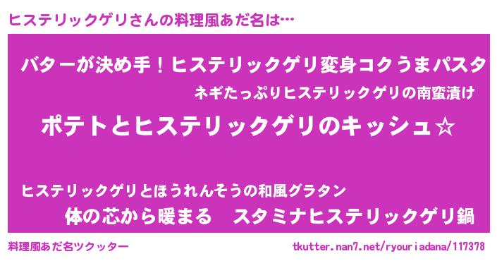 | 男性向けラノベタイトル風あだ名 | 『ダンジョンにヒステリックゲリを求めるのは間違っているだろうか』 |