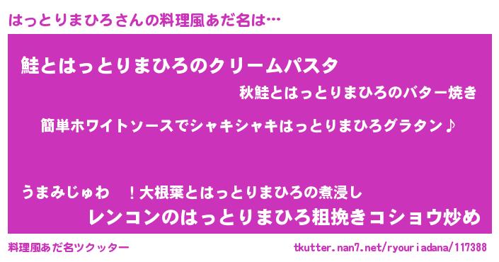 | ヘコむあだ名 | 『はっっぺ』『はっとりまひろ(笑)』 |