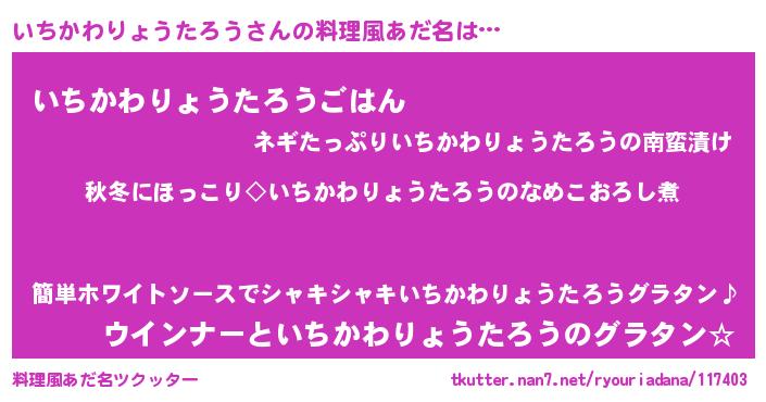 | 男性向けラノベタイトル風あだ名 | 『いちかわりょうたろうに滅ぼされるだけの簡単なお仕事です』 |