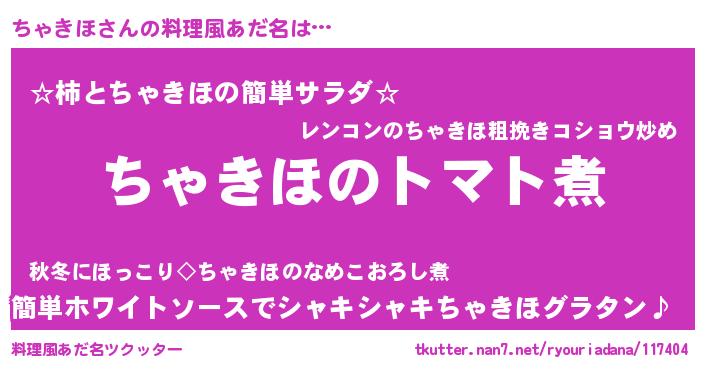 | 男性向けラノベタイトル風あだ名 | 『おまえをオタクにしてやるから、俺をちゃきほにしてくれ! 』 |