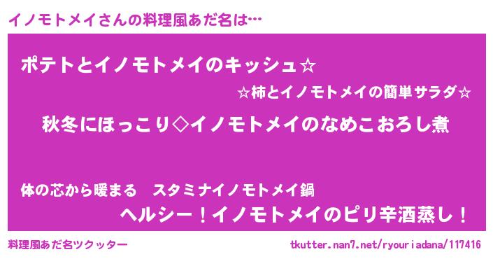 | ポケモン風あだ名 | 『イノゴンZ』『ヒイノモトメイ』 |