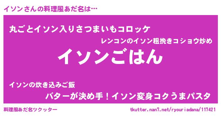 | ヘコむあだ名 | 『イソン(笑)』『イソぷりん』 |