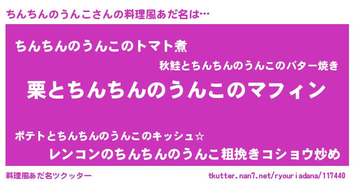 | 男性向けラノベタイトル風あだ名 | 『はたらくちんちんのうんこさま!』 |