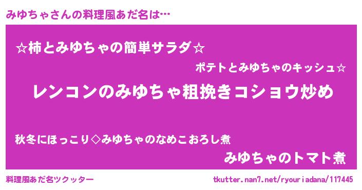 | 女子向けラノベタイトル風あだ名 | 『みゆちゃアンティーク』 |