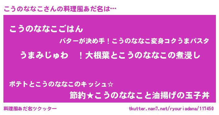 | 意味不明あだ名 | 『こうのななこフォーエバー』 |