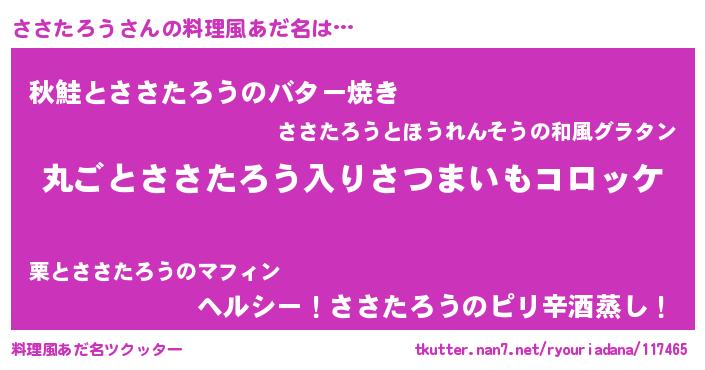 | 意味不明あだ名 | 『住所不定無職ささたろう(91歳)』 |