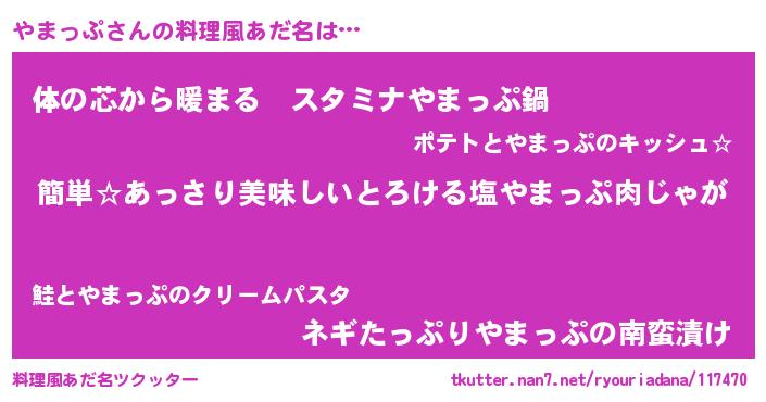 | 胡散臭い通販商品みたいなあだ名 | 『前代未聞の健康食品…その名も「やまっぷ」』 |