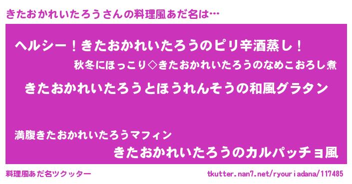 | 女子向けラノベタイトル風あだ名 | 『きたおかれいたろうの玉の輿計画!』 |