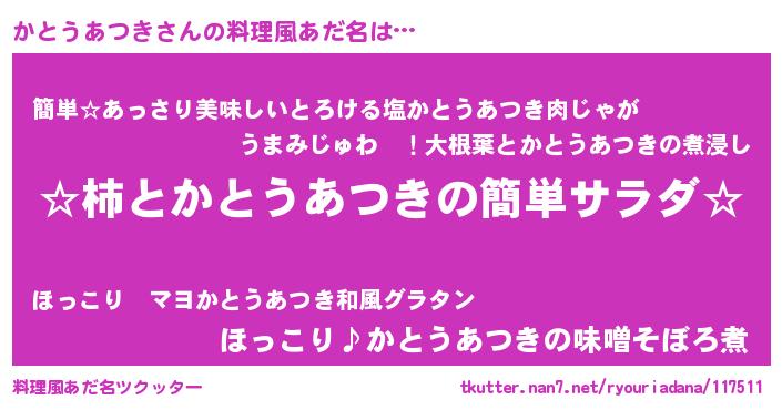 | 可愛いあだ名 | 『かーみん』『かとうあつきママ』 |