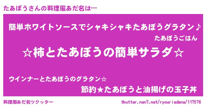 | ピコ太郎風あだ名 | 『タア六郎』『タコ八郎』『ピタ太郎』 |