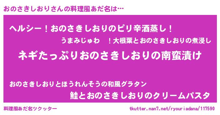 | 男性向けラノベタイトル風あだ名 | 『オノサキシオリアートオンライン』 |