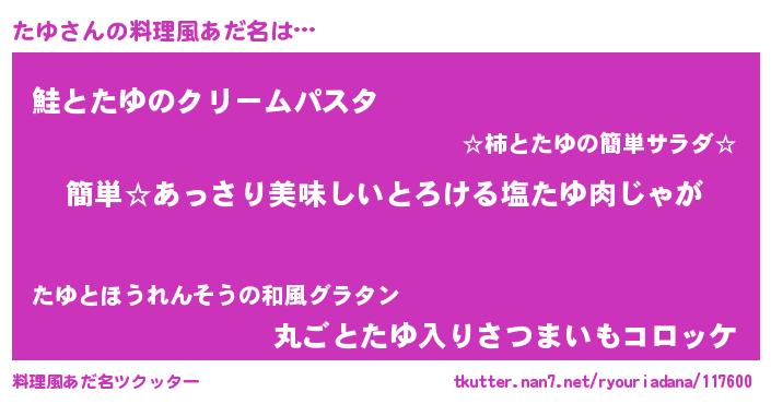 | ヒーロー風カッコイイあだ名 | 『ネオタユ』『慈愛の使者たゆ』 |