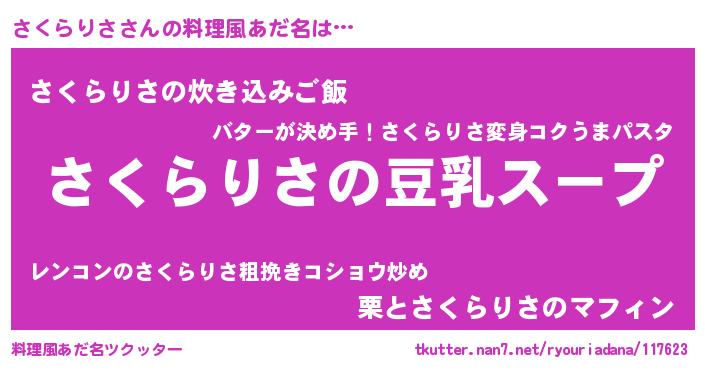 | 意味不明あだ名 | 『とにかく怪しいさくらりさ』 |