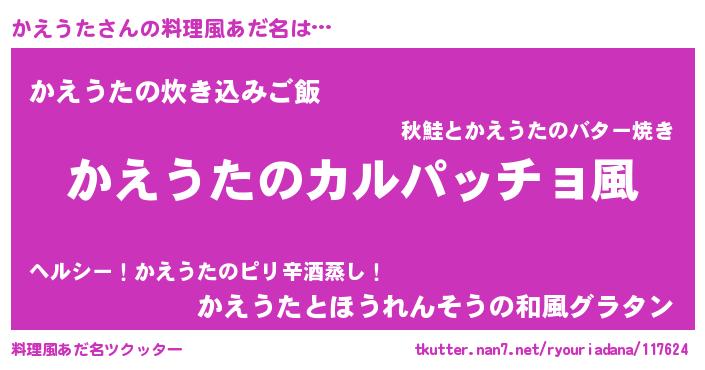| ヘコむあだ名 | 『かえうた(小並感)』『かえもー』 |