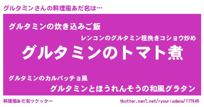 | 男性向けラノベタイトル風あだ名 | 『おまえをオタクにしてやるから、俺をグルタミンにしてくれ! 』 |