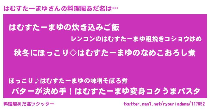 | 意味不明あだ名 | 『眠気覚ましガムはむすたーまゆ味』 |