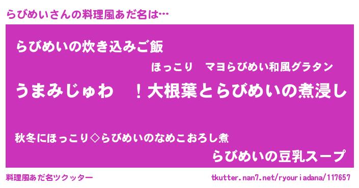 | ヘコむあだ名 | 『レバニラ』『らびっぺ』 |