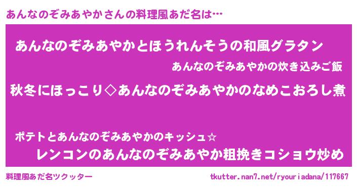 | 男性向けラノベタイトル風あだ名 | 『あんなのぞみあやかに滅ぼされるだけの簡単なお仕事です』 |