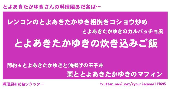 | 意味不明あだ名 | 『自称とよあきたかゆき』 |