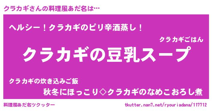 | 胡散臭い通販商品みたいなあだ名 | 『信頼と実績のペンダント…その名も「クラカギ」』 |