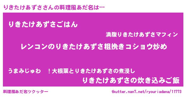 | 意味不明あだ名 | 『自称りきたけあずさ』 |