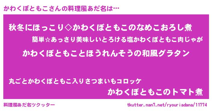 | 意味不明あだ名 | 『なめこ科かわくぼともこ属』 |