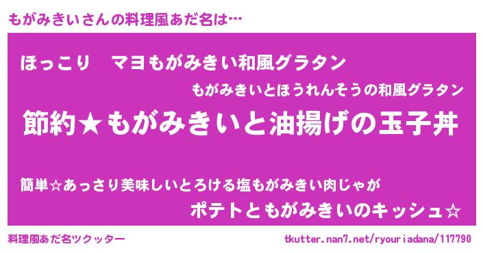 | ヘコむあだ名 | 『もがにー』『もが太郎』『レバニラ』 |