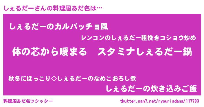 | 意味不明あだ名 | 『しぇるだーフォーエバー』 |