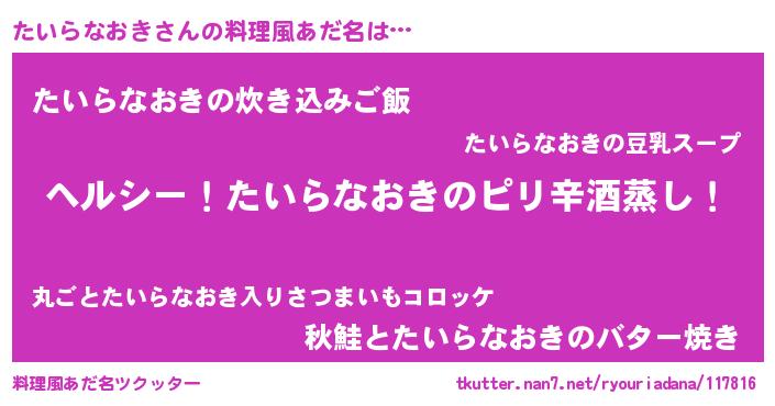 | ヘコむあだ名 | 『たいらなおき(笑)』『たいお』 |