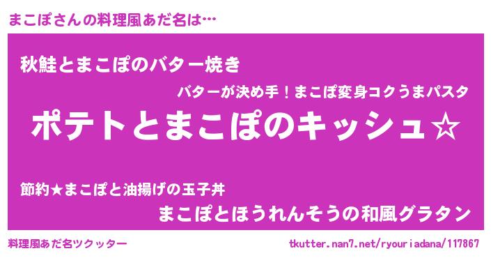 | 女子向けラノベタイトル風あだ名 | 『まこぽの卵を拾いまして』 |