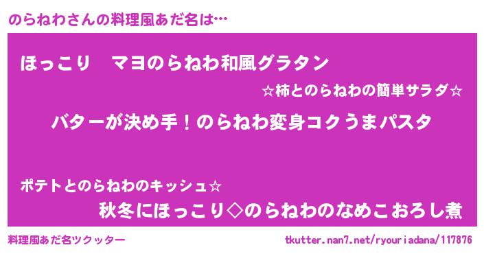 | ヘコむあだ名 | 『のらを』『のらにー』『なまこ酢』 |