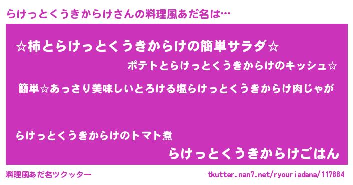 | ヘコむあだ名 | 『らけっとくうきからけ(笑)』『らけっぺ』 |