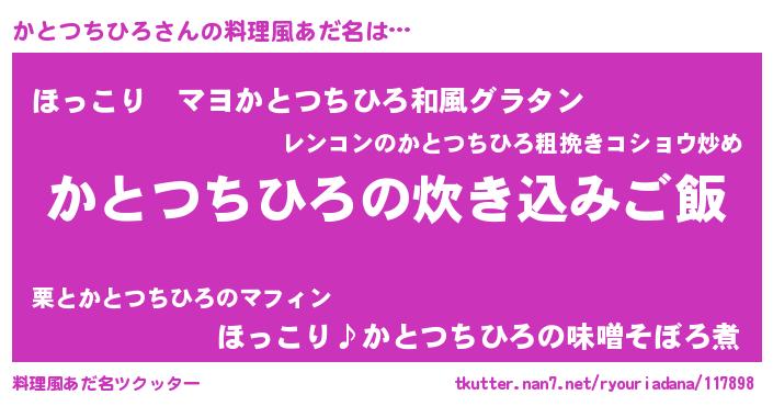 | ヒーロー風カッコイイあだ名 | 『仮面カトダー』『スーパーカトツチヒロ』 |