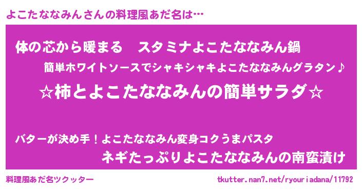 | 胡散臭い通販商品みたいなあだ名 | 『世界が平和になる高級そうな壺…その名も「よこたななみん」』 |