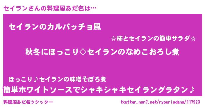 | 胡散臭い通販商品みたいなあだ名 | 『あなたにだけ特別に提供する100年もののヴィンテージワイン…その名も「セイラン」』 |