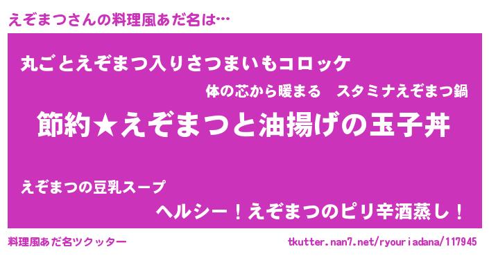 | 意味不明あだ名 | 『ペロリンえぞまつ』『自称えぞまつ』 |
