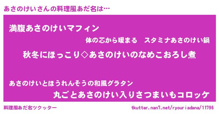 | 意味不明あだ名 | 『永久保存あさのけい』 |