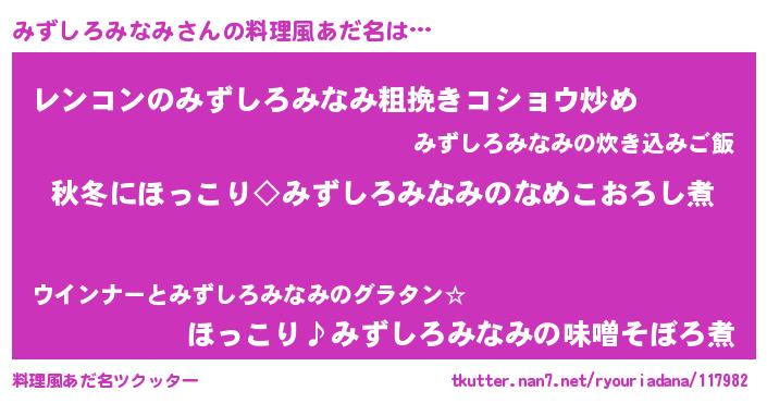| 胡散臭い通販商品みたいなあだ名 | 『芸能人もオススメするアガリクス…その名も「みずしろみなみ」』 |