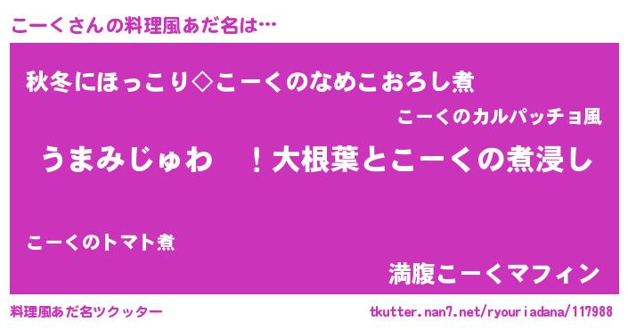 | 女子向けラノベタイトル風あだ名 | 『こーくの婚約者』 |