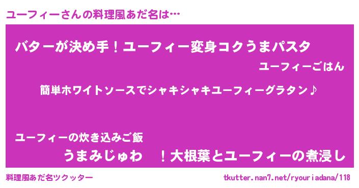 | ポケモン風あだ名 | 『ヒユーフィー』『ユックウザ』 |