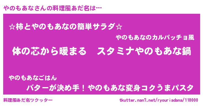 | 意味不明あだ名 | 『やのもあなフォーエバー』 |