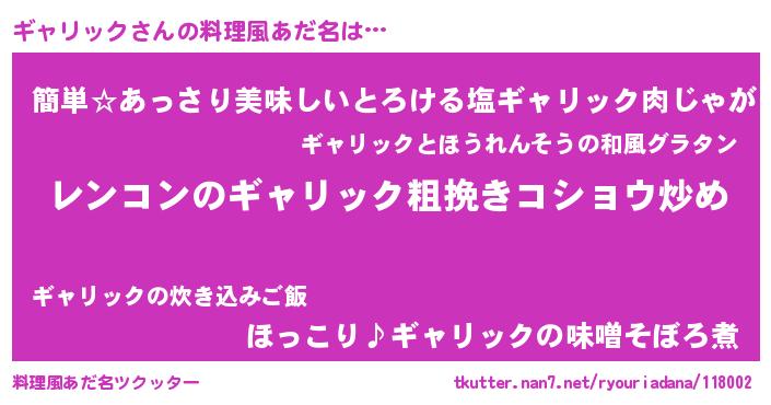 | ヘコむあだ名 | 『ギャリック(笑)』『ギャふぇ~』 |
