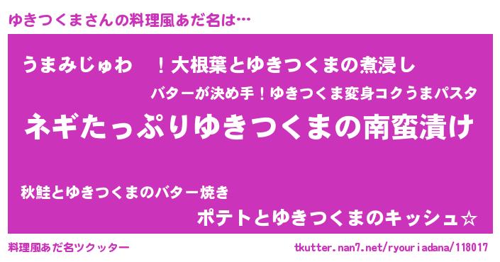 | 男性向けラノベタイトル風あだ名 | 『ユキツクマアートオンライン』 |
