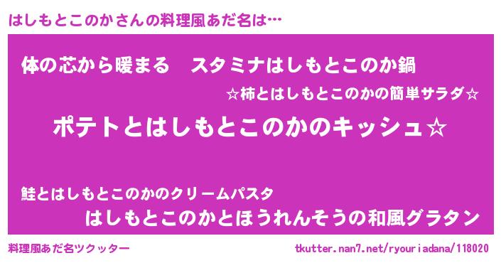 | ポケモン風あだ名 | 『ヒハシモトコノカ』『ハシモダネ』 |