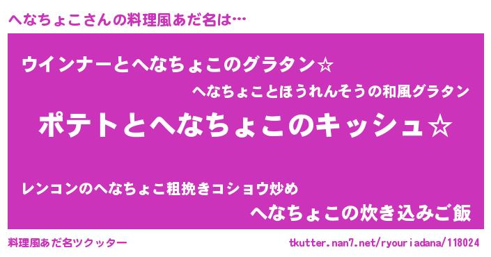 | ポケモン風あだ名 | 『ヒヘナチョコ』『ヘナチダネ』 |