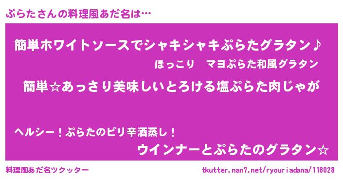 | 意味不明あだ名 | 『永久保存ぷらた』『ぷらたフォーエバー』 |